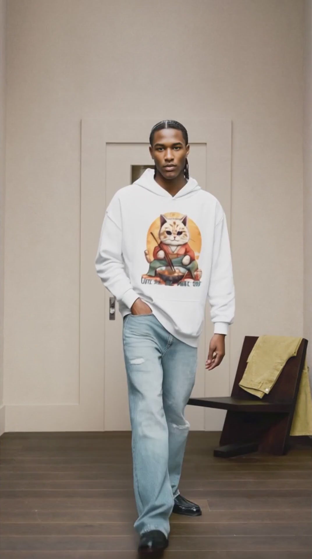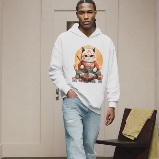 Laat je omarmen door de gezellige warmte en trendy stijl van deze unieke hoodie, perfect voor koelere avonden! Het speelse tafereel van de kaiwan kat die geniet van een kom noedelsoep komt tot leven met levendige kleuren, waardoor deze hoodie niet alleen ongelooflijk comfortabel is, maar ook een visueel feest voor het oog